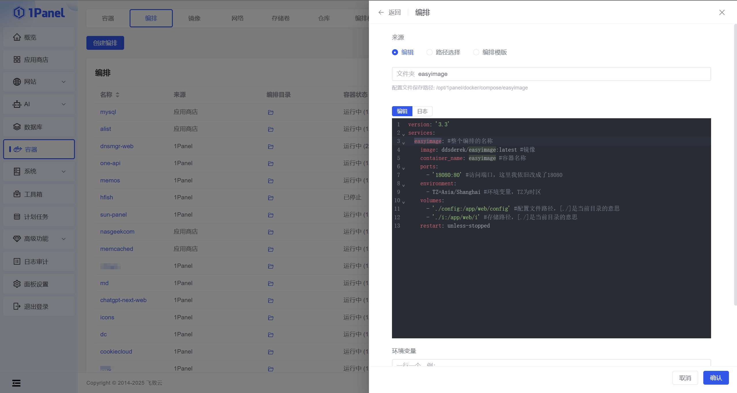 创建编排,选择从yaml文件(有的面板是yml格式,如无法识别,可改成yaml后缀)