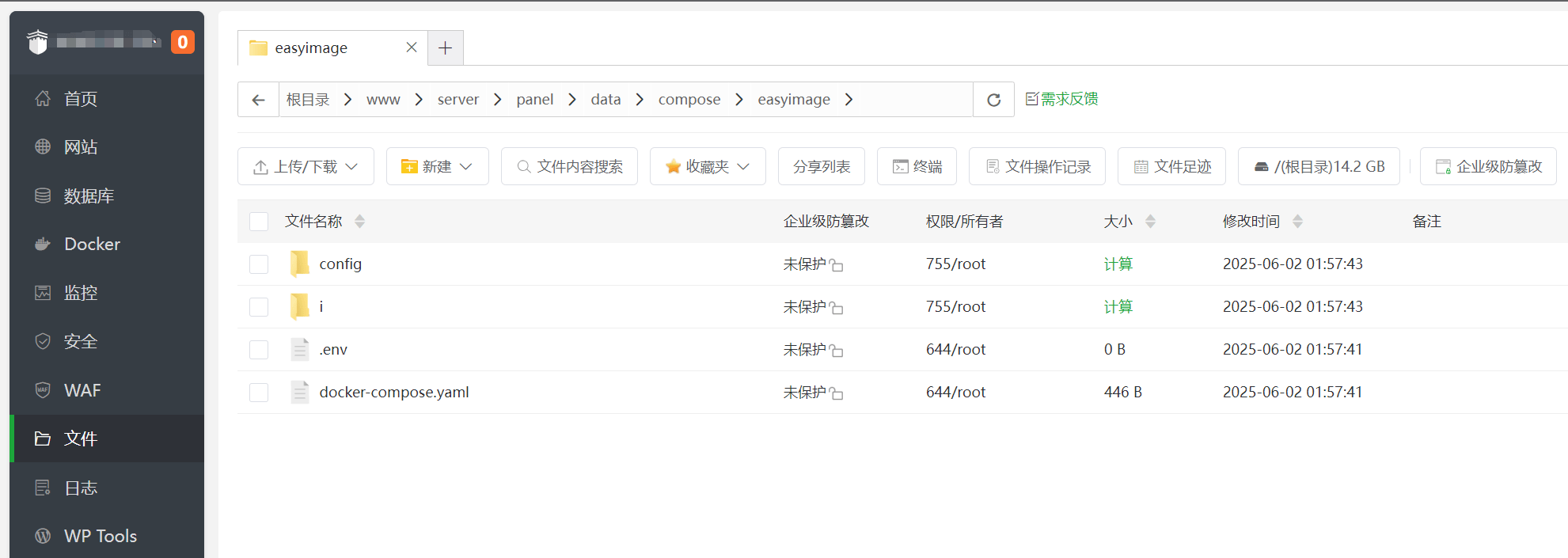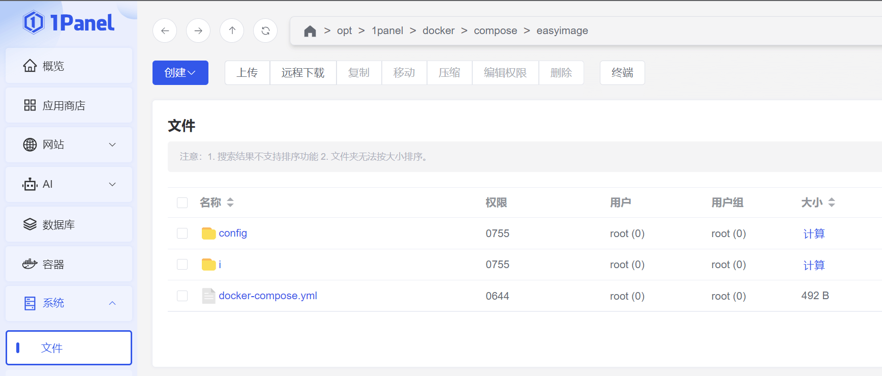 打包或拷贝编排所在的文件夹,例如:/opt/1panel/docker/compose/easyimage,当然你也可以整个 /opt/1panel/docker/compose 都备份🙂。