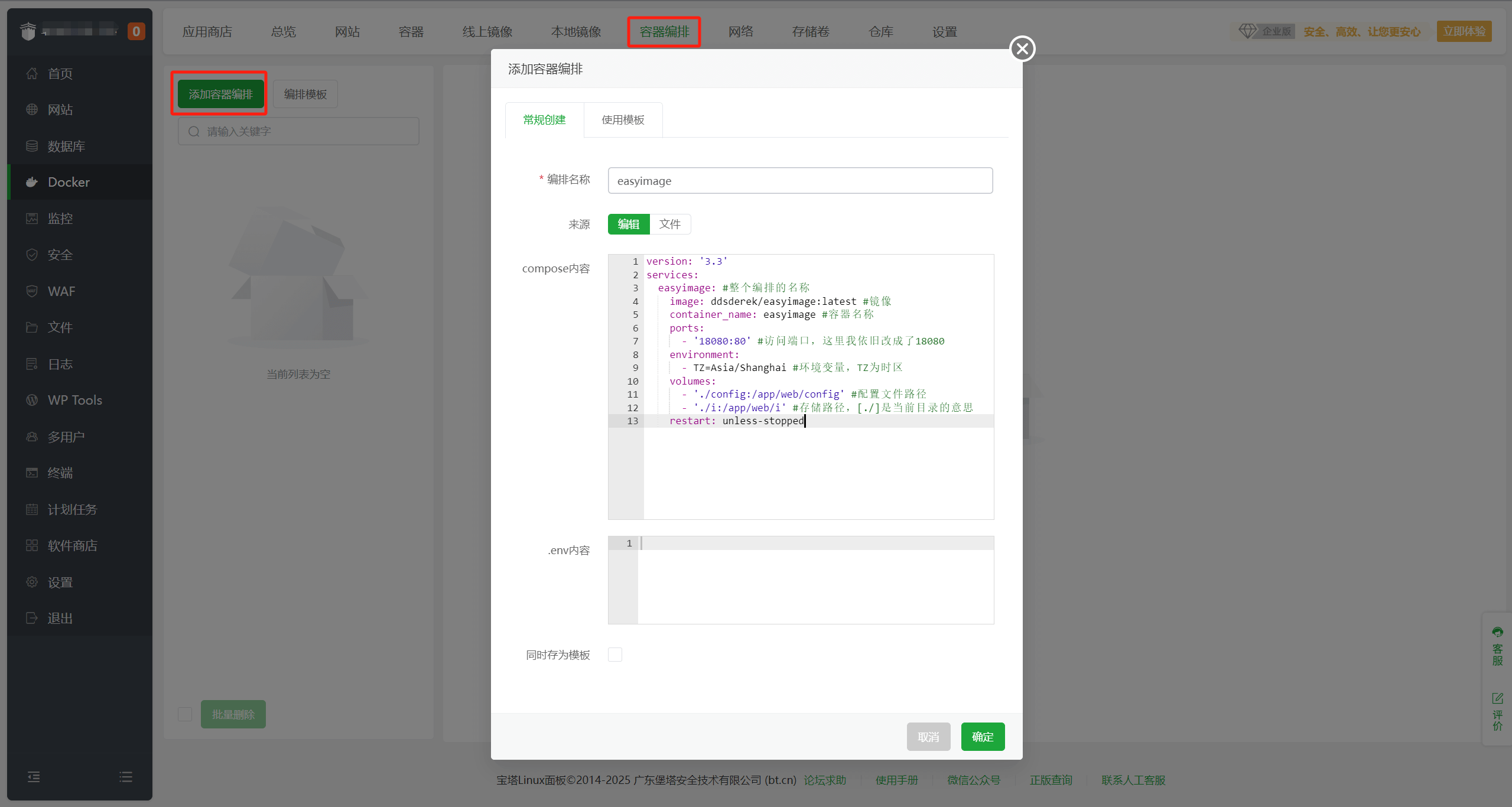 毕竟每家的docker管理器,默认编排目录会有所不同的!这样也是更方便备份、迁移。
