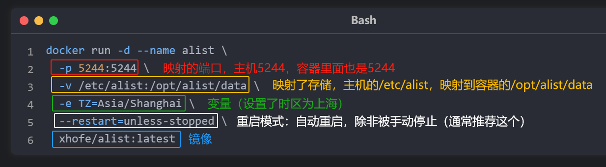 映射:把容器的访问端口、文件"挂钩"到主机,方便访问和持久化数据(通常只改左边的)。