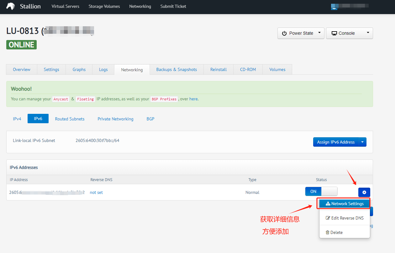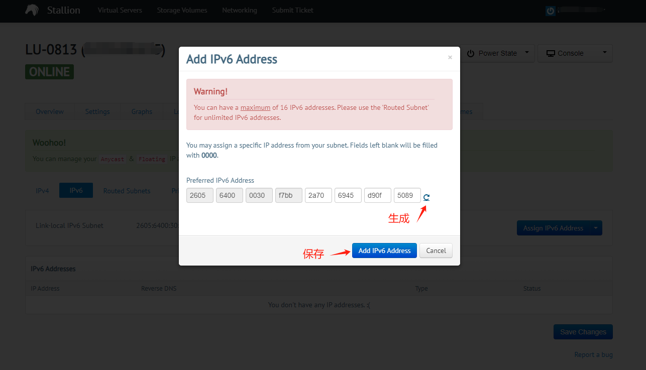 用你熟悉的编辑器将 ipv6地址 和 ipv6网关 添加到 /etc/network/interfaces (自行替换地址)