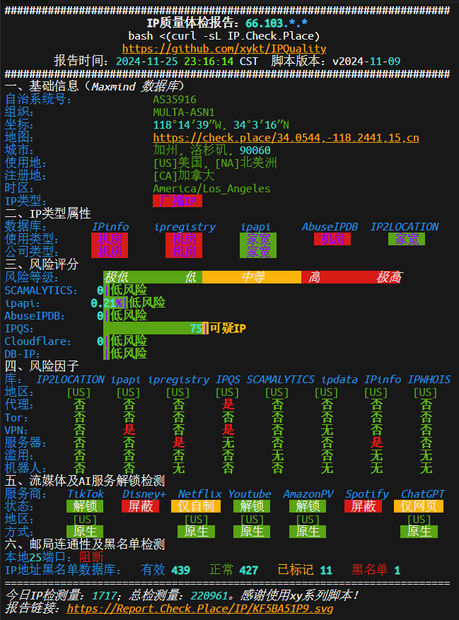 1.13 ms AS35916 美国 加利福尼亚 洛杉矶 multacom.com