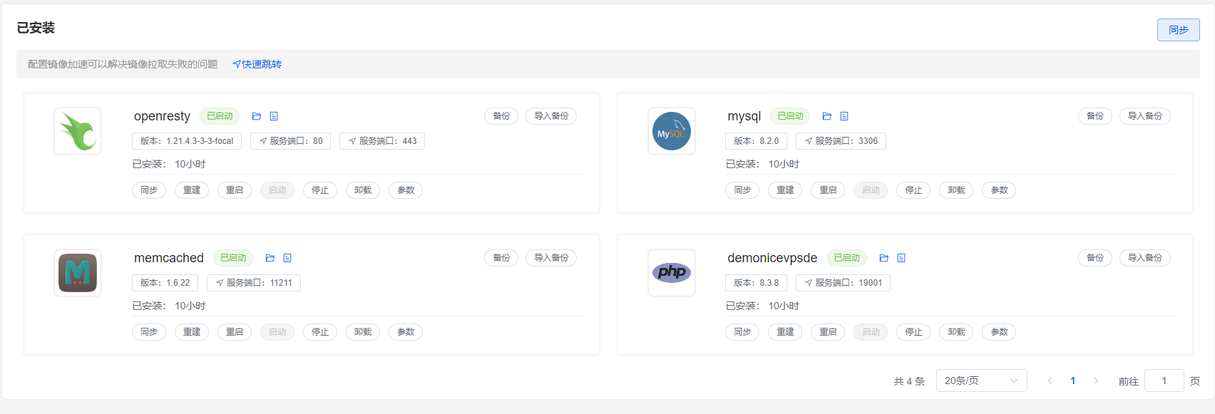 环境为debian12系统+1panel面版,php8+mysql8+memcached环境;
